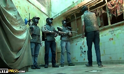 Nasty paintball game turns into pleasing horny brunette