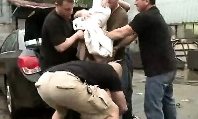 Blonde girl in college uniform gets bounded and gangbanged