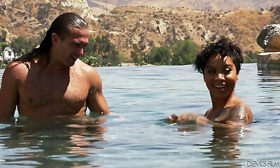 Abby Cross always luved getting a rough plumbing by the blue pool