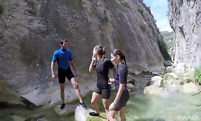 Sporty Isabella Nice and her 3 well shaped girls lure guy for FFFM