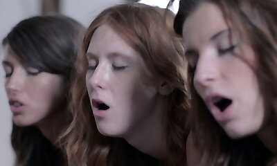 Feverish boy pleases three immense assed babes with steamy cunnilingus
