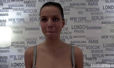 Lovely and petite brown-haired has her tight anal hole penetrated after an interview