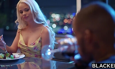 Guy fed her a delicious dinner and she served his huge ebony cock in come back