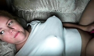 Now here is a damsel who likes to wear fishnet stocking and play with her toy