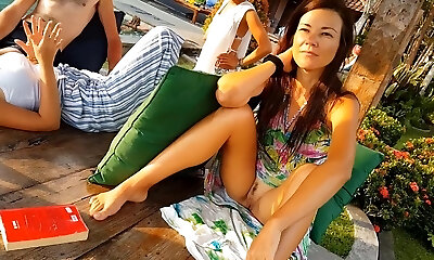 Pretty Brunete Amateur Girl Demonstrating On A Public Beach