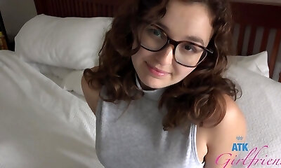 lena paul est une jolie fille avec des lunettes curieuse d'une bite