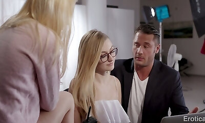 la secrétaire blonde aux lunettes kamila et son homologue sate leur patron