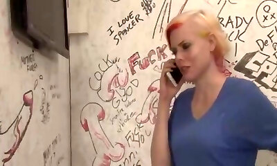 la femme suce l'étranger et le mari dans la cabine du glory fuck-hole