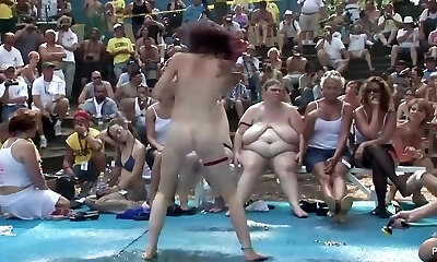 Lots of all naked tarts are prepped for beach volleyball for fun