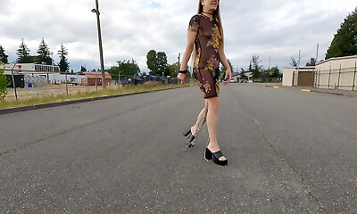 Longpussy, Dragging over a Kilogram (Two.Three lbs) of chain off my Gash in a Sheer Dress out for a Walk.