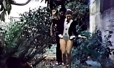 Red-hot vintage brunette sexy babe blows dick and bends over